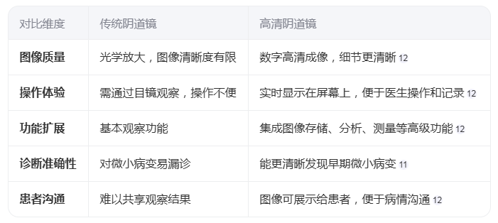 高清阴道镜是一种先进的妇科检查设备,主要用于观察宫颈、阴道及外阴部位的病变。它通过高分辨率电子成像技术,将病灶图像放大5-40倍,帮助医生发现肉眼难以察觉的早期病变。与传统阴道镜相比,高清阴道镜能够提供更清晰、更细腻的图像,大大提高了病变检出率。